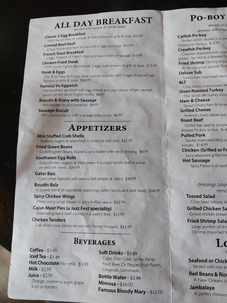 For those late-night cravings, the Cajun meat pies and open-faced roast beef sandwich are must-tries, leaving an unforgettable taste lingering long after your visit. As you savor your meal, enjoy the lively atmosphere enhanced by friendly staff, including the renowned bartender, Benjamin, who knows how to keep spirits high.